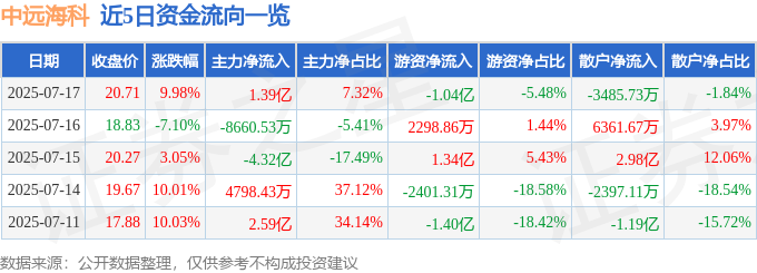 7月17日的资金流向数据方面,主力资金净流入1.39亿元,占总成交额7.32%,游资资金净流出1.04亿元,占总成交额5.48%,散户资金净流出3485.73万元,占总成交额1.84%。