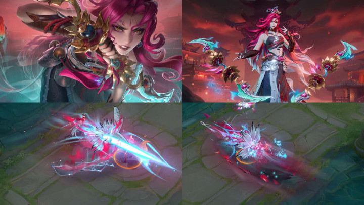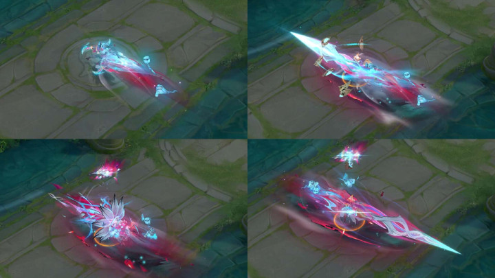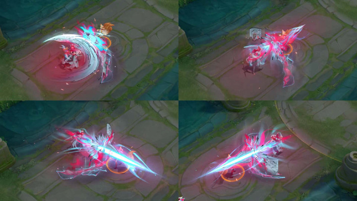 然后再来看一下一技能,一技能释放之后也是主要展现红色为主,不过中间有一道光刃,这个光刃效果感觉有点太显眼了。